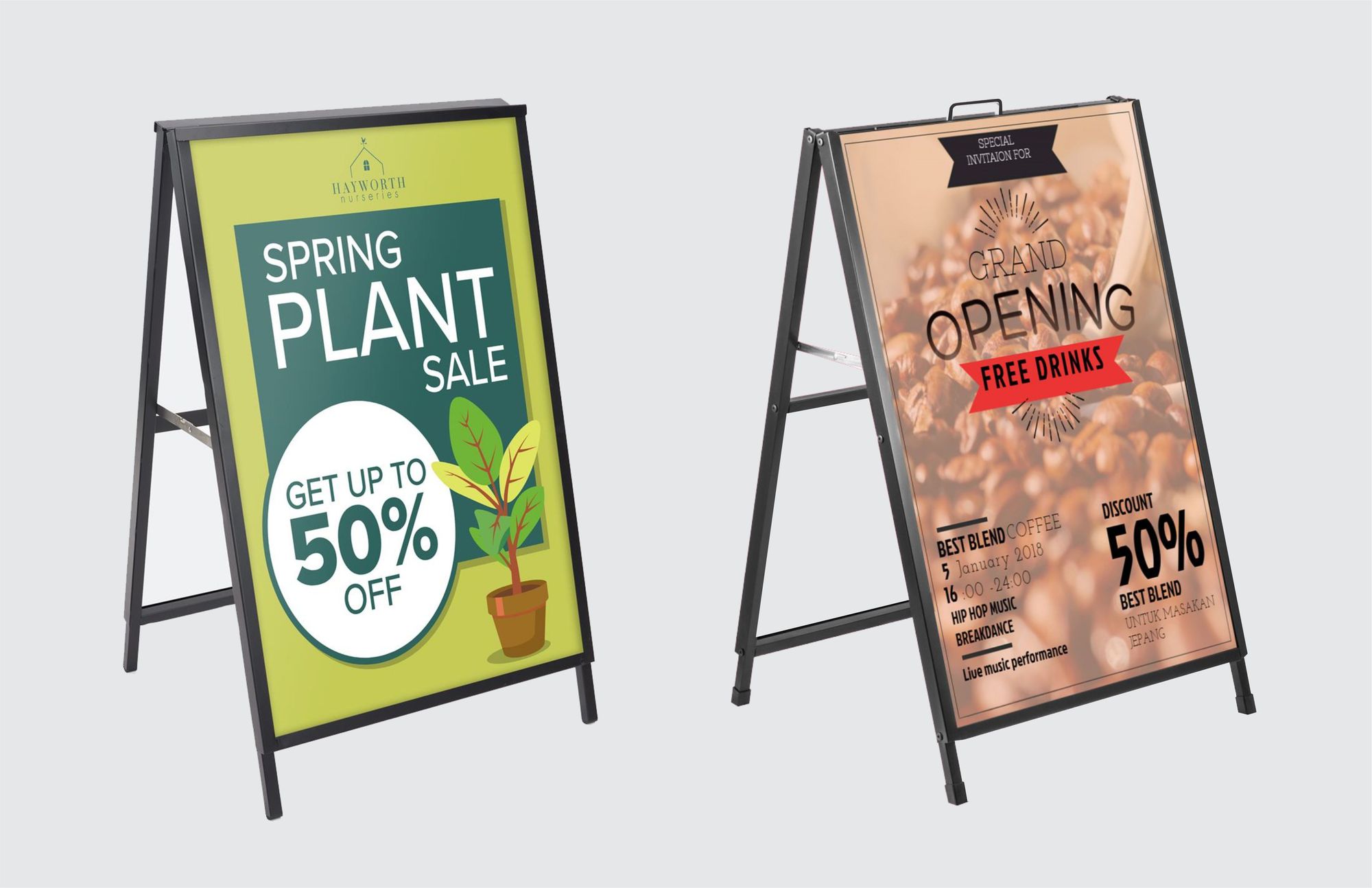 - Cafés & Hospitality Venues : Perfect for menus, specials, QR codes, and seasonal campaigns.